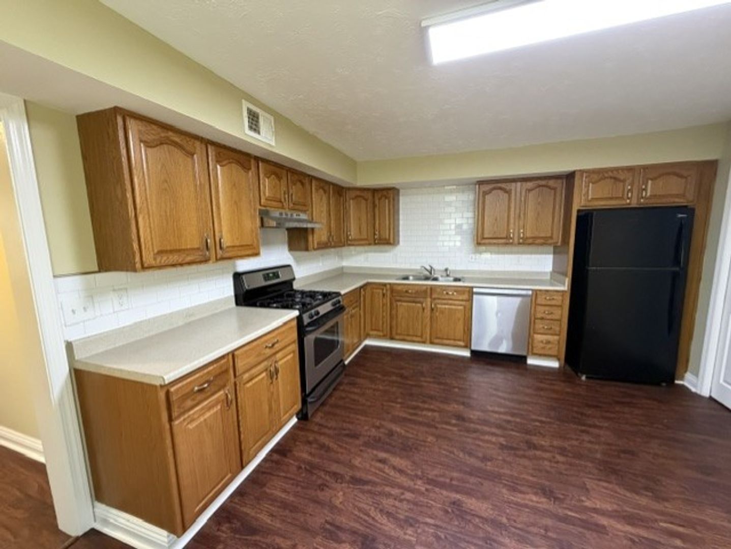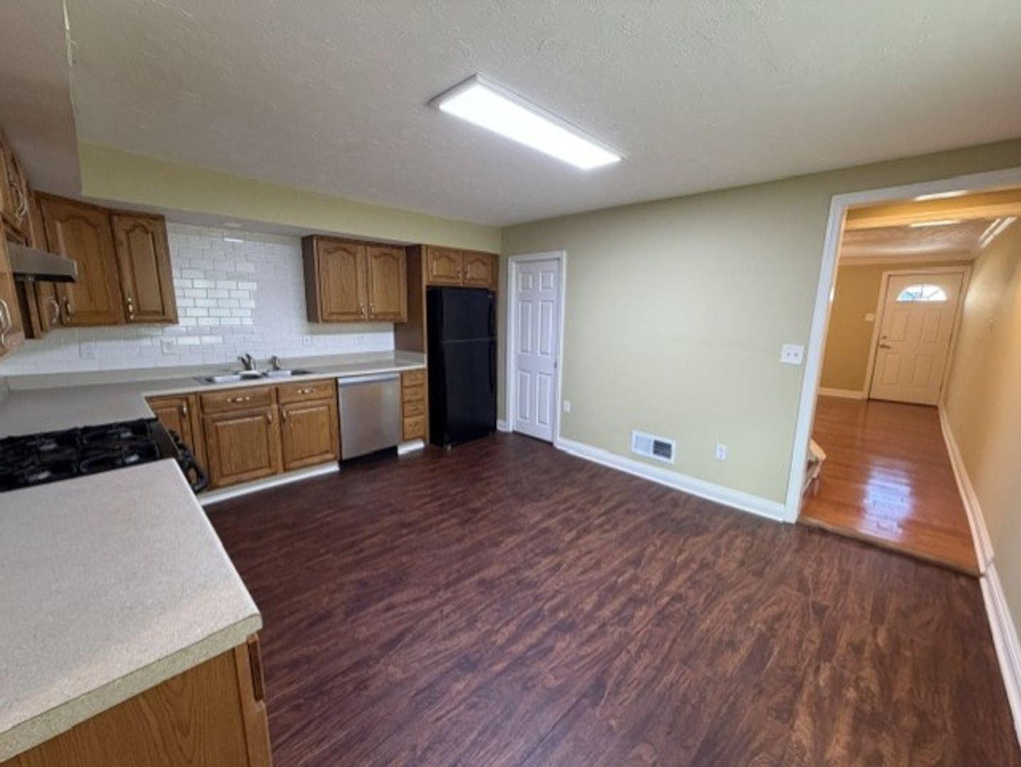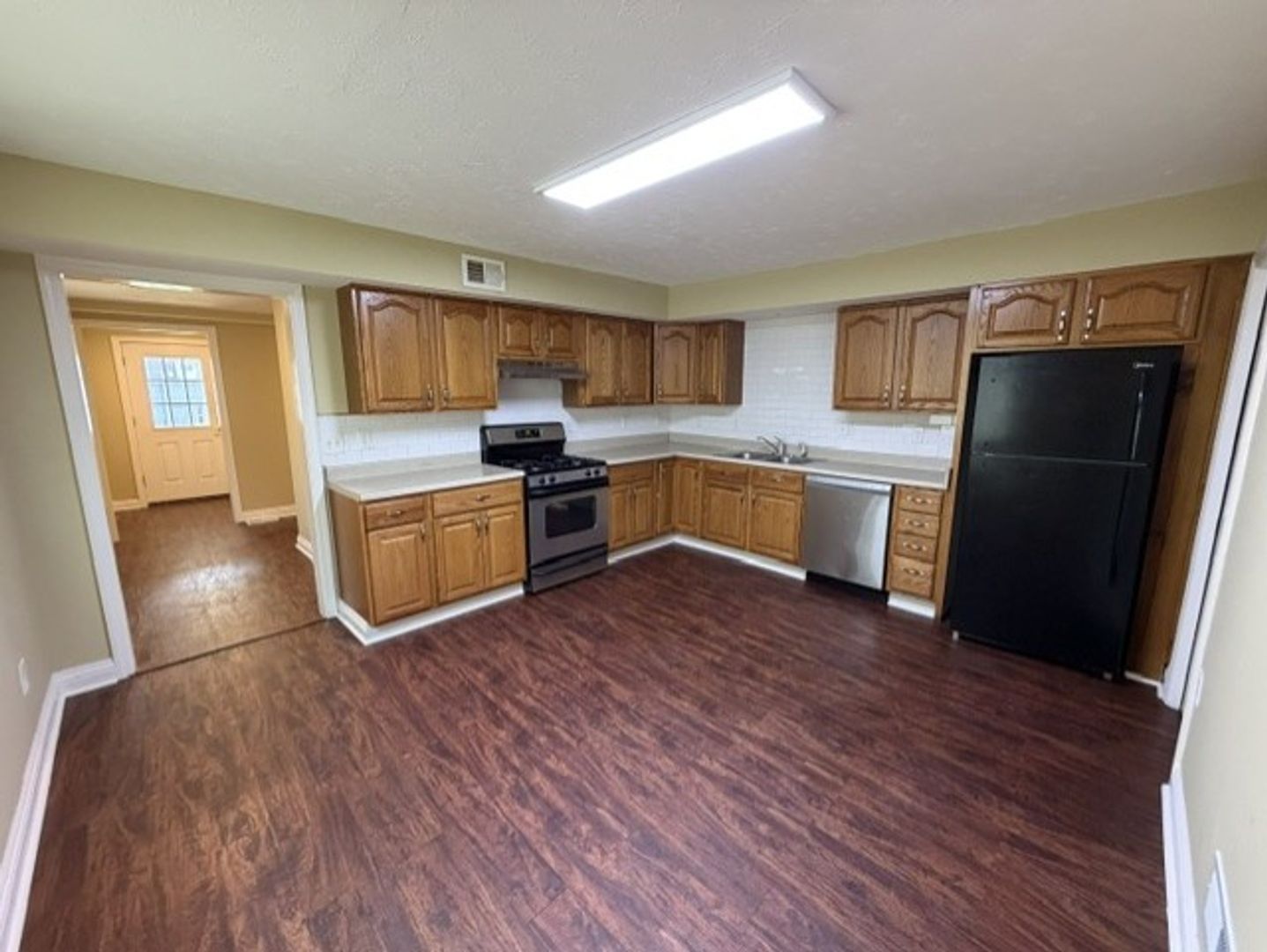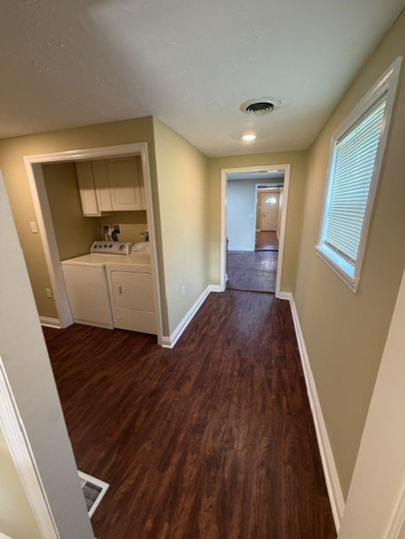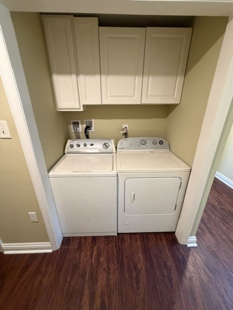 Appliances included are refrigerator, stove, dishwasher, washer and dryer.