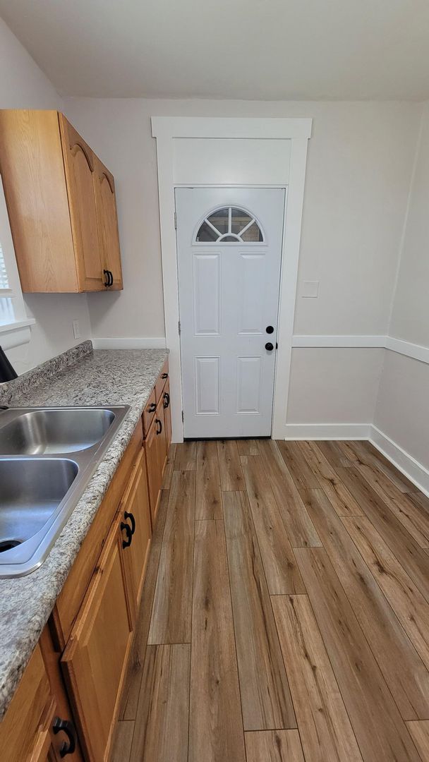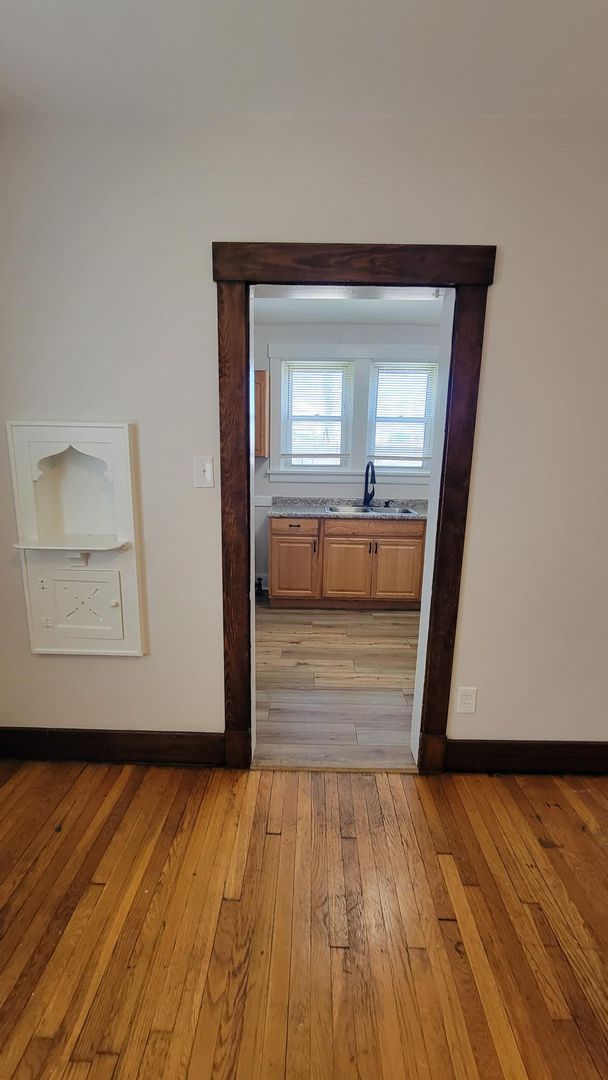 MUST SEE 1 bedroom apartment for rent on 1st floor of a 4 unit building. Hardwood floors throughout. Living room with stain glass windows, decorative fireplace and sun room, spacious bedroom and large dining room. Refrigerator and stove included. Shared porch space off kitchen. Hook-ups for washer/dryer in basement. Single detached 1 car garage. Easy access to Route 51 and Brownsville Road. Minutes to downtown Pittsburgh and the Southside. Water, sewage and trash included in rent. Tenant pays gas and electric.