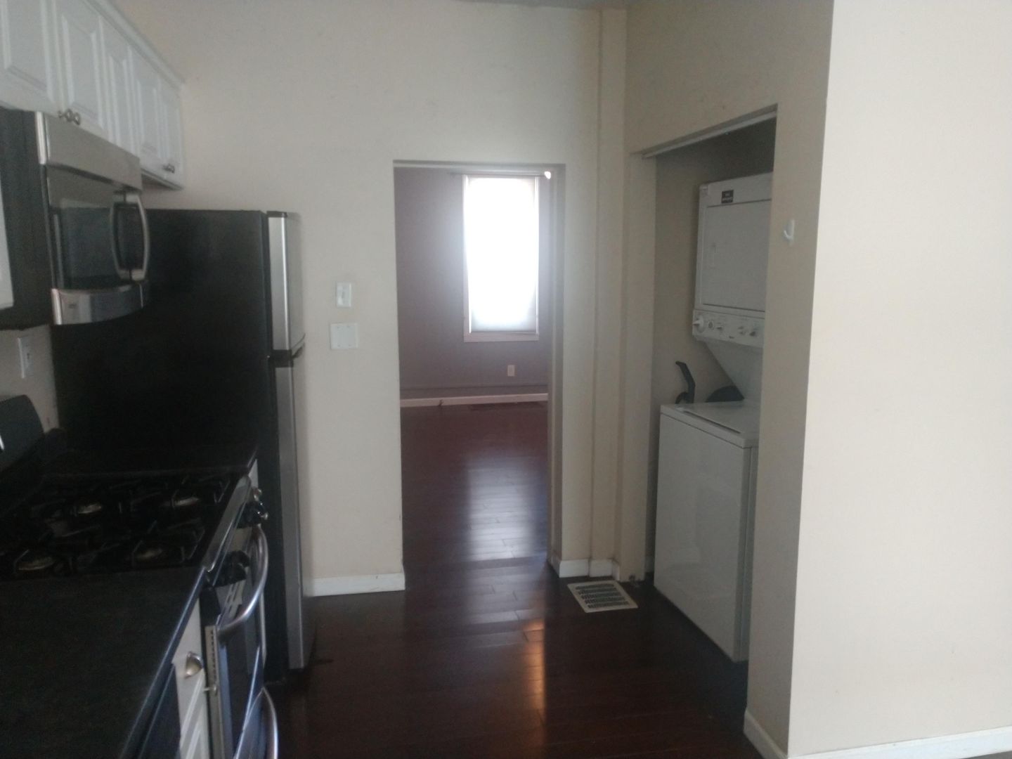 Appliances included are refrigerator, stove, dishwasher, microwave, washer and dryer.