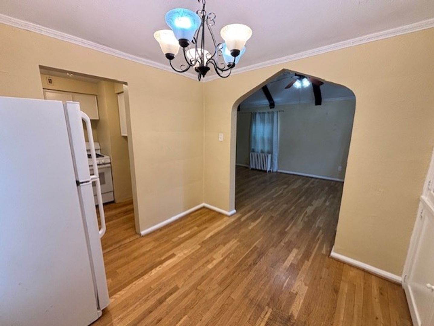 Appliances included are refrigerator, stove, washer and dryer.